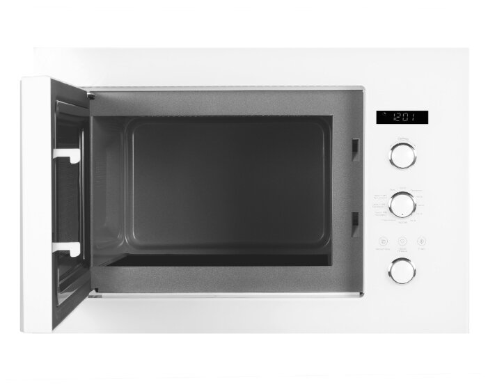 Встраиваемая микроволновая печь Weissgauff на 25 литров, выполненная в белом цвете, равномерно разогревает еду без поворотного стола, благодаря системе Spiegel и специальному биокерамическому покрытию!