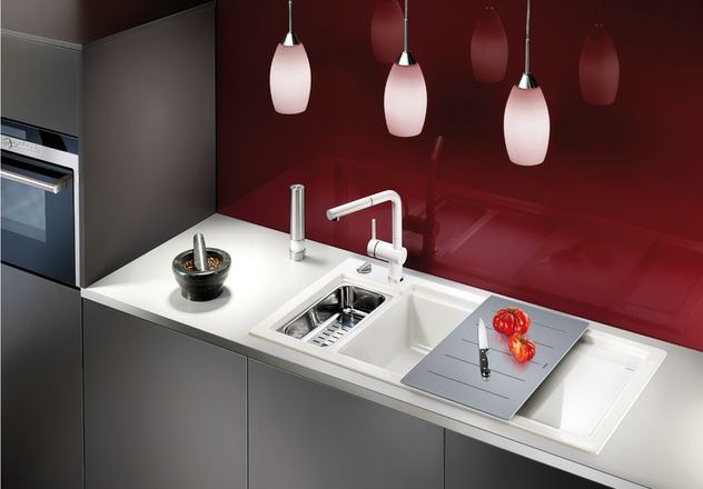 Ухаживать за мойкой для кухни из керамики чрезвычайно легко – она легко моется, не требуя специальных моющих средств, не подвержена царапинам, не окрашивается, не теряют вида от воздействия высоких температур и кислот. Керамика высокого качества от Blanco имеет грязеотталкивающее покрытие PuraPlus.