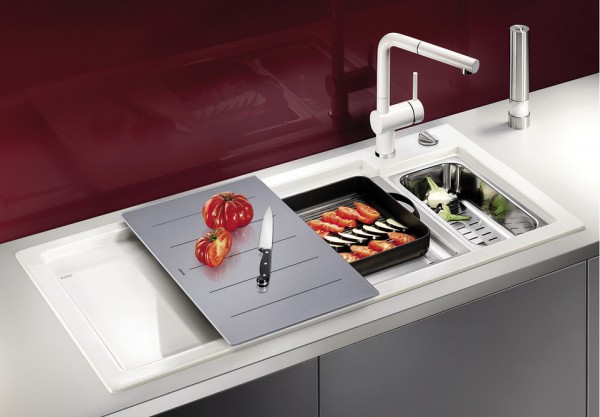 Кухонные мойки Бланко многофункциональны, это их отличительная черта. Компания Blanco выпускает различные модели с вспомогательными чашами, корзинками для сушки посуды, разделочными досками, есть даже экземпляры с перфорированным коландером (оригинальным мусоросборником).