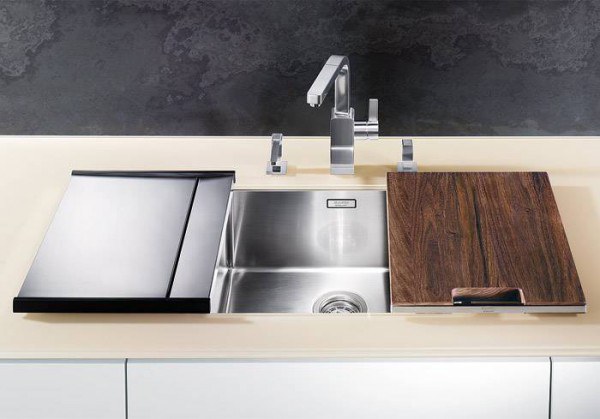 Кухонные мойки Бланко многофункциональны, это их отличительная черта. Компания Blanco выпускает различные модели с вспомогательными чашами, корзинками для сушки посуды, разделочными досками, есть даже экземпляры с перфорированным коландером (оригинальным мусоросборником).
