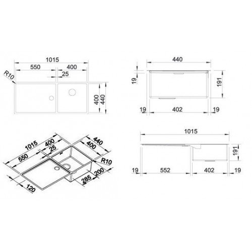 Стильный дизайн удачно дополняется корзинчатым вентилем современной формы различного диаметра. Небольшой радиус закругления мойки 10 мм позволяет создать максимальный объем мойки, где поместится даже самая крупная посуда. Дополнительно можно заказать коландер, корзину для посуды, разделочную доску, что повысит функциональность мойки и комфорт ежедневной работы на кухне.