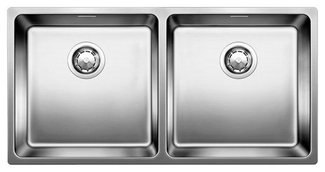 Кухонная мойка Blanco Andano 400/400-U с двумя большими чашами выполнена из высококачественной нержавеющей стали и предназначена для установки в шкаф от 90 см накладным методом - под столешницу.