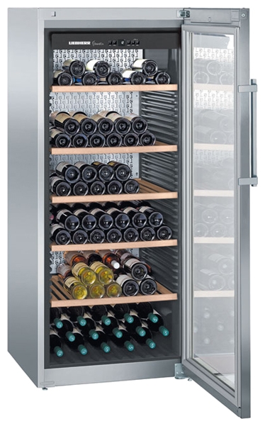 Винный шкаф Liebherr WKes 4552 оснащается шестью полками, изготовленными из высокопрочного дерева. Благодаря этому он может использоваться для одновременного хранения 201 бутылки. Встроенный вентилятор обеспечивает равномерное распределение воздуха, препятствуя образованию тёплых зон даже при максимальной загрузке. Устройство укомплектовано компрессором, соответствующим стандарту энергопотребления А. При работе он не издаёт звуков громче 41 дБ. Благодаря этому винный шкаф можно устанавливать в любом помещении, не опасаясь нарушения комфорта. Автоматическая капельная система значительно облегчает размораживание устройства, а также помогает поддерживать порядок в помещении при выполнении этого процесса. Винный шкаф подаёт громкий звуковой сигнал при продолжительном открытии дверцы, предотвращая повышение температуры внутреннего пространства. Устройство можно устанавливать в помещениях с любой планировкой благодаря возможности закрепления дверцы на противоположной стороне.