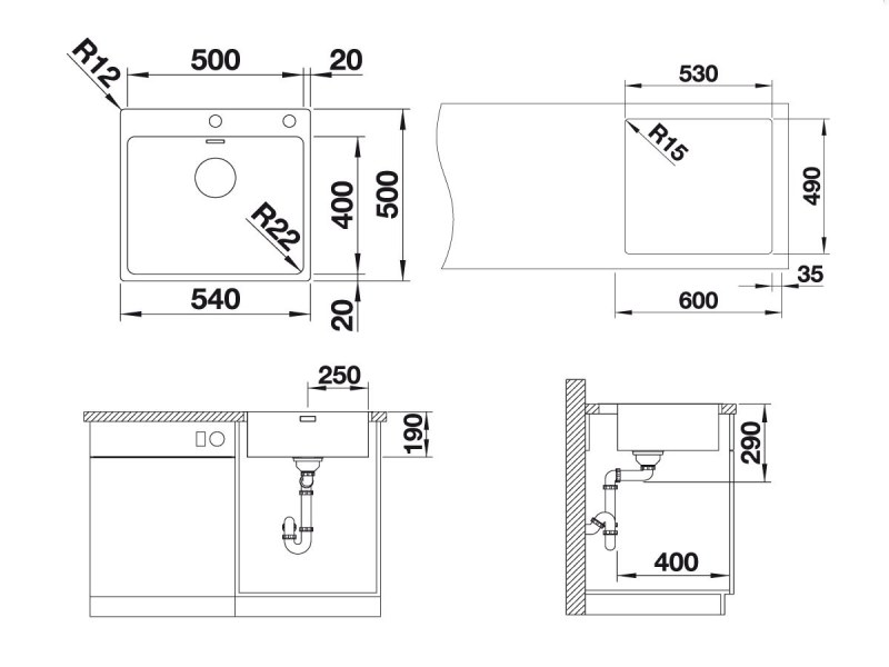 Для установки смесителя предусмотрена удобная площадка с готовыми отверстиями под смеситель и клапан-автомат – для установки нужно будет сделать только один вырез в столешнице. Малый радиус закругления чаши гарантирует максимальный полезный объем.