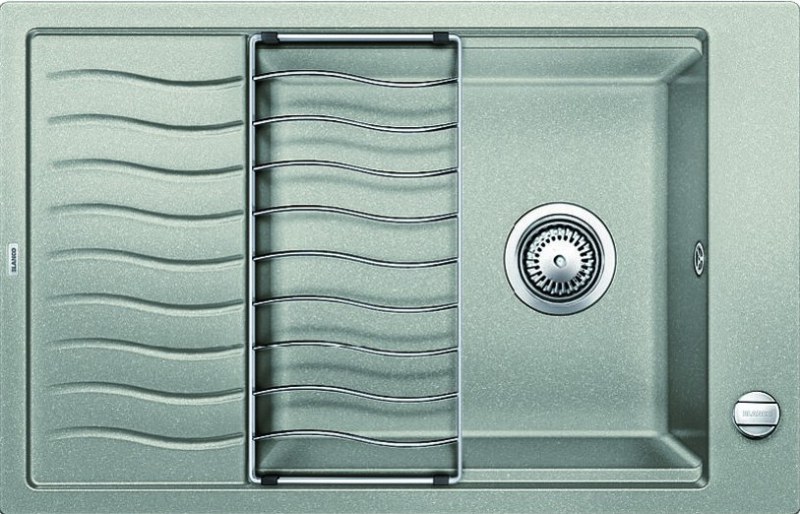Компактная кухонная мойка Blanco Elon XL 6S F жемчужный спроектирована так, чтобы обеспечивать максимальный комфорт, практичность и удобство использования даже на небольшой кухне. Интересное решение – передвижная решетка из нержавеющей стали, которая позволяет при необходимости значительно расширить пространство крыла мойки. Изгибы решетки в точности повторяют волнообразный рисунок на крыле.