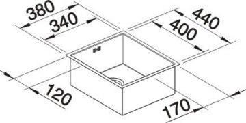 Кухонная мойка Blanco ZEROX 340-IF предназначена для врезки в столешницу сверху, при этом плоский металлический кант создает впечатление, что мойка установлена в один уровень со столешницей. Шкаф должен быть шириной не менее 45 см. Нулевой радиус закругления позволяет создать максимальный объем чаши. При установке мойки возле стены или пенала необходимо учитывать ширину канта.