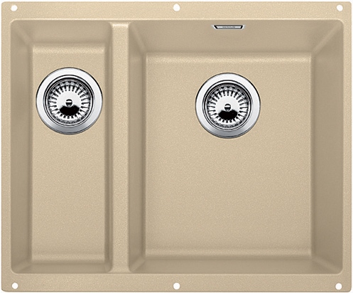 Кухонная мойка Blanco Subline 340/160-U шампань из искусственного гранита максимально эргономична благодаря двум чашам – основной, расположенной справа, и дополнительной. Наибольший объем чаш достигается небольшим радиусом закругления.
