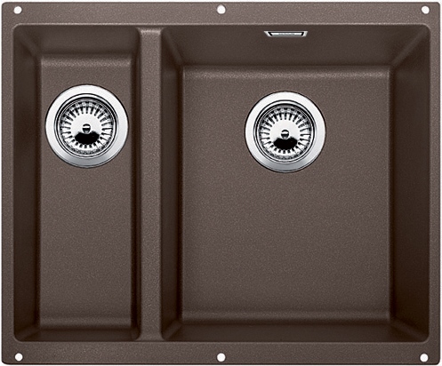Кухонная мойка Blanco Subline 340/160-U кофе из искусственного гранита максимально эргономична благодаря двум чашам – основной, расположенной справа, и дополнительной. Наибольший объем чаш достигается небольшим радиусом закругления.