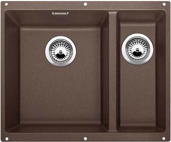 Стильная кухонная мойка Blanco Subline 340/160-F кофе из искусственного гранита максимально эргономична благодаря двум чашам – основная расположена слева, дополнительной, меньшего размера, по правую руку. Наибольший объем чаш достигается небольшим радиусом закругления.