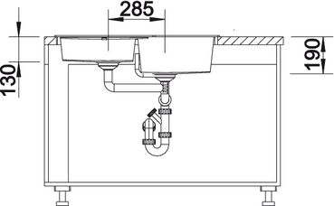 Возможна установка под столешницу. Рекомендованный смеситель: BLANCOPYLOS-S. Мойка укомплектована отводной арматурой с двумя корзинчатыми вентилями 3 ½".