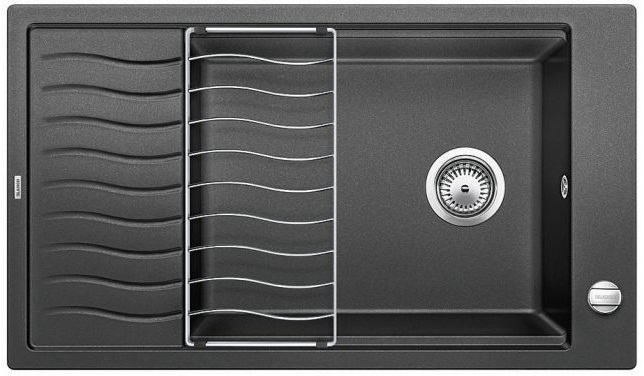 Кухонная мойка Elon XL 8S антрацит – оригинальное решение для современной кухни. Изюминка модели – многофункциональная решетка, которая значительно увеличивает рабочую поверхность. Необычно большая чаша позволяет свободно размещать в ней крупную посуду. А передвижная решетка в нужный момент увеличивает крыло, чтобы обсушить посуду или продукты. Решетку можно снять и использовать как подставку под горячую посуду.