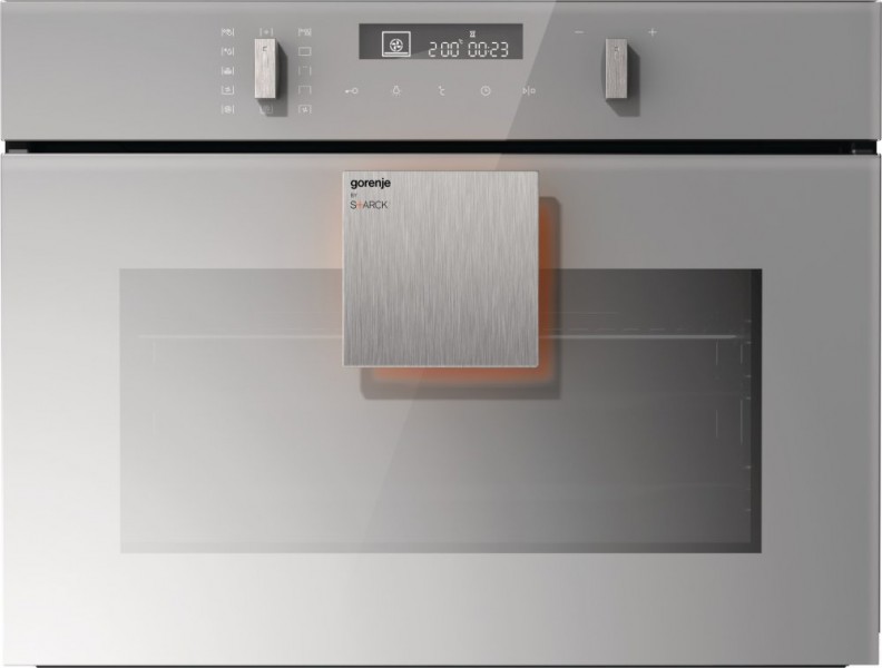 Техника Gorenje by Starck сделана с использованием высокоотражающих материалов, призванных отразить индивидуальность хозяев дома и стиль их жизни. При этом используется минималистичный и чистый дизайн – почти незаметные ручки и переключатели, серое глянцевое стекло с металлическим блеском, уникальный хромовый глянцевый принт на стеклокерамических панелях. На стекле и ярких хромовых поверхностях вспыхивают оранжевые всполохи - отражения цвета, которым покрыта внутренняя сторона ручек, выполненных из высокотехнологичного материала ZAMAC (комбинация цинка, алюминия, магния и меди).
