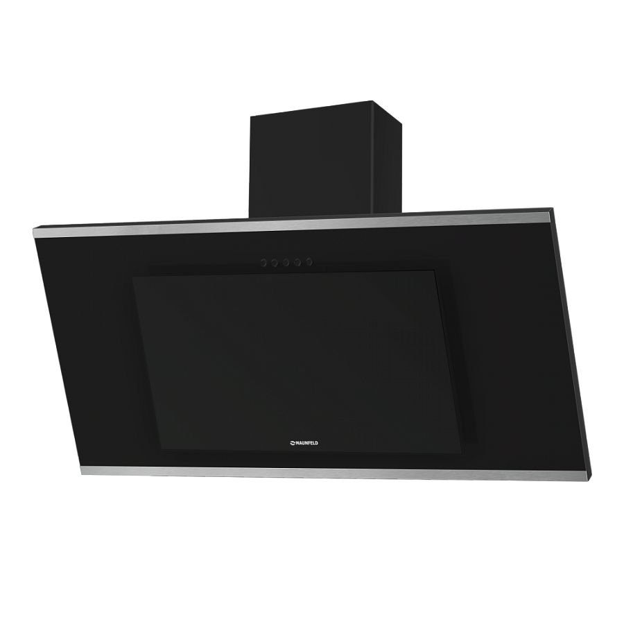 Модель выпускается в черном цвете с отделкой стальными полосами. Наклонная вытяжка монтируется на стену над поверхностью плиты. На ваш выбор можно сделать отвод в вентиляционное отверстие или использовать сменный угольный фильтр.