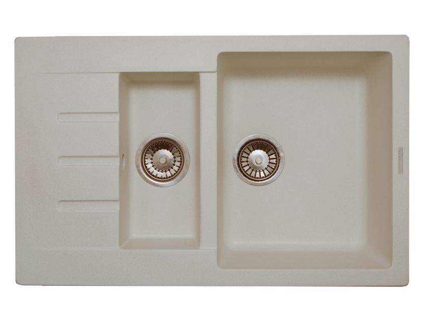 Гранитная мойка для кухни LAVA D.2 – многофункциональная полноценная модель с дополнительной чашей и небольшим крылом. Небольшую чашу глубиной 11 см можно использовать для споласкивания мелких предметов, столовых приборов, зелени, фруктов. Основная чаша имеет достаточно большую глубину – 19 см и подходит для мытья любой посуды, в том числе крупногабаритной. На корпусе мойке намечены 4 отверстия под смеситель, дистанционный слив, кран для питьевой воды и (или дозатор мыла). Мойка оборачиваемая , то есть дополнительную чашу и крыло можно повернуть как вправо, так и влево. Фиксируется мойка прочным металлическим крепежом, которым комплектуется изделие.