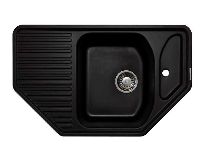 Гранитная мойка для кухни LAVA A.1 – угловая модель небольшого размера с глубиной чаши 16 см. Эргономичность, компактность,  удобное крыло и экологичный малошумный материал мойки делает работу на кухне комфортной.  Переливное отверстие находится в районе небольшое крыла, которое таким образом можно использовать для стекания воды с посуды, зелени или помытых продуктов. Мойку можно устанавливать как в прямую столешницу, так и в угловую. Под смеситель подготовлено отверстие. Фиксация в столешнице производится  с помощью прочного металлического крепежа. Минимальная толщина стенок мойки 8 мм. Сливная арматура – в комплекте.