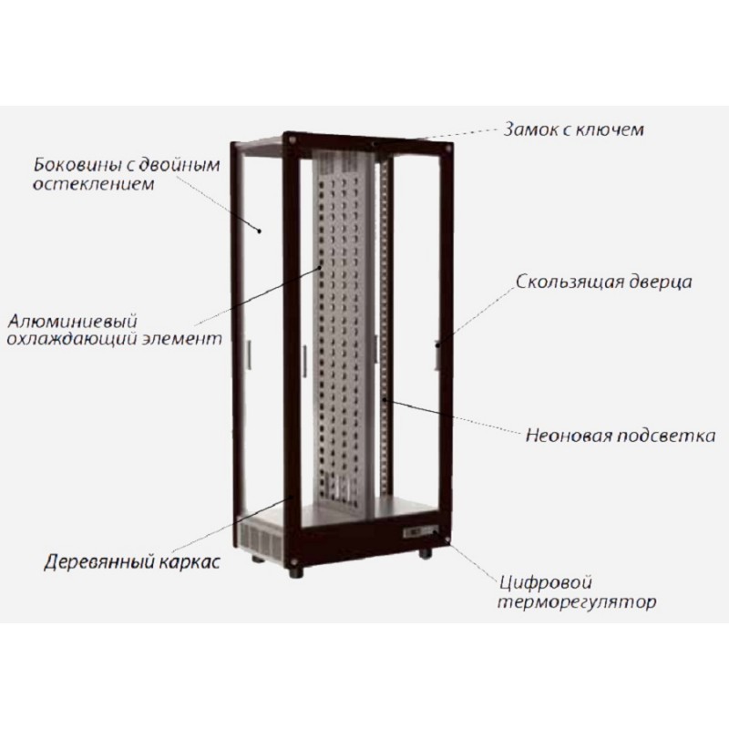 Итальянская компания EXPO рада предложить истинным ценителям вина серию холодильного оборудования CORNICE.В данной серии представлены холодильники для вина. Линия Cornice Vino оснащена инновационной системой охлаждения на основе расположения охлаждающего элемента по центру винного шкафа. Помимо того, что эта система обеспечивает наилучшие условия для хранения, она также позволяет устанавливать стеклянные панели со всех сторон рамы, что в свою очередь обеспечивает полный обзор выставляемого товара.Сдвижные дверцы могут располагаться как с одной стороны, что обычно используется если винный шкаф установлен вплотную к стене, так и с двух сторон, если Вы планируете разместить винную витрину по центру бара или ресторана.Компания EXPO предлагает своим клиентам большую гамму цветовых решений. Стандартными цветами CORNICE являются натуральный цвет, вишня, венге, RAL9003, RAL9004.Так же Вы можете выбрать любой другой цвет из более, чем ста дополнительных вариантов.Данная модель винного шкафа является ярким примером универсальности, высокого качества и приемлемой стоимости. Винный шкаф модели CV181V выполнен из натурального массива в стильном оригинальном дизайне. Удачные параметры шкафа – высота 180 см, масса 115 кг – делают его малогабаритным, но вместительным.Под прочным закаленным стеклом скрываются изящные полочки, способные вместить 116 бутылок ценнейшего вина.Двери шкафчика выполнены по принципу купе, что позволяет при случае с легкостью открывать и закрывать шкаф. Задумка расположения полок такова, что винные бутылки удобно перемещать и менять местами по вкусу хозяев.Такой стильный современный шкаф впишется в молодежную кухню изысканных ценителей вина, станет приятным дополнением уютной веранды загородного дома, дополнит смелый интерьер модернизированных кафе или национальных ресторанов.Шкафы такого плана экономичны в потреблении энергии, компактны и одновременно вместительны, что является их преимуществами на постоянно обновляющемся рынке товаров и услуг.Все изделия собираются исключительно в Италии высококлассными специалистами и после сборки проходят испытания и тщательный осмотр.На всё оборудование компании EXPO предоставляется гарантия 2 года.