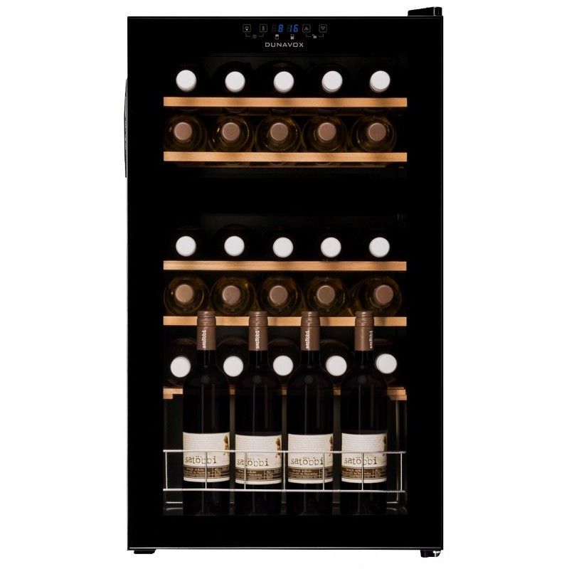 Dunavox DX-30.80DK винный холодильник компрессорного типа для хранения 30 бутылок вина Модель DX-30.80DK имеет съемное хромированное демонстрационное ограждение, две зоны охлаждения. Винные шкафы серии HOME предназначены для правильного хранения и демонстрации коллекции вин и подходят как для дома, так и для небольших ресторанов.Dunavox DX-30.80DK применяются для хранения красного и белого вина дома. По сравнению с моделью DX-28.88K вмещает на одну бутылку больше, имеет две зоны охлаждения.Рекомендуем устанавливать температуру между двумя зонами с различием не выше 6°C.