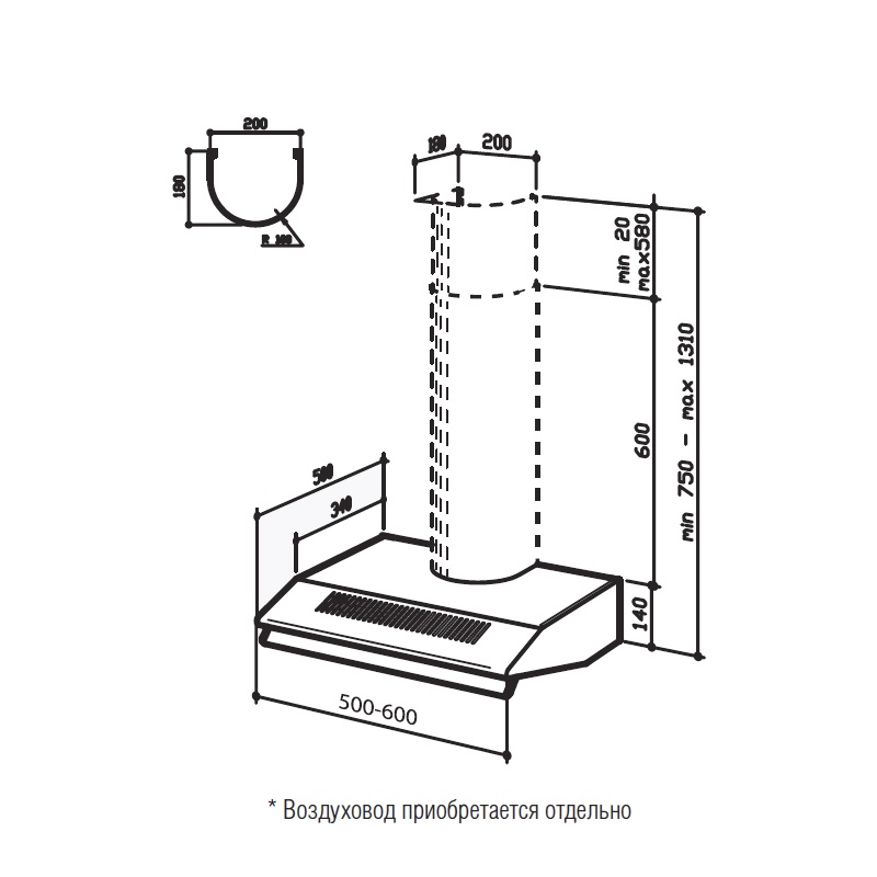 Ширина вытяжки