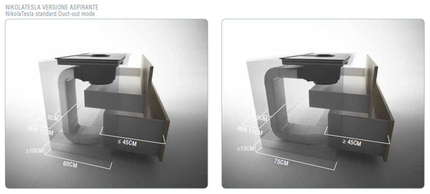 NIKOLATESLA может быть установлена как в островном варианте так и в пристенной кухне с глубиной модуля не менее 560мм и шириной не менее 900мм