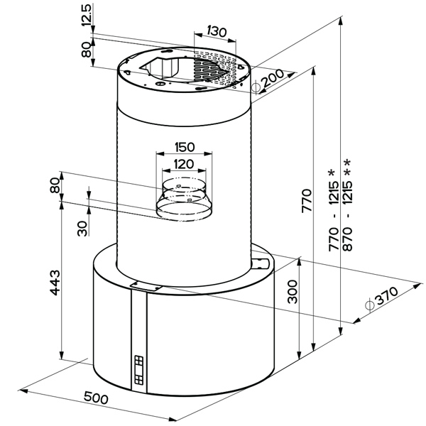 Цилиндрическая форма высокоэффективной вытяжки Faber Cassiopea Isola EG10 X/V A50 позволяет максимально удачно поместить ее в кухонном пространстве, подчеркнув элегантность общего дизайна.