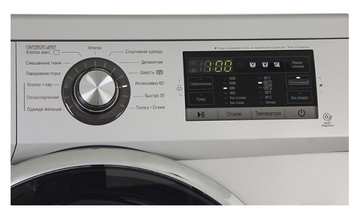 | Специальные программы | стирка деликатных тканей, предотвращение сминания, стирка детской одежды, стирка спортивной одежды, стирка детской одежды, программа стирки смешанных тканей, супер-полоскание, быстрая стирка, предварительная стирка, программа удаления пятен, подача пара |