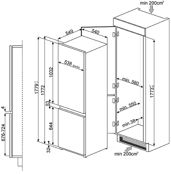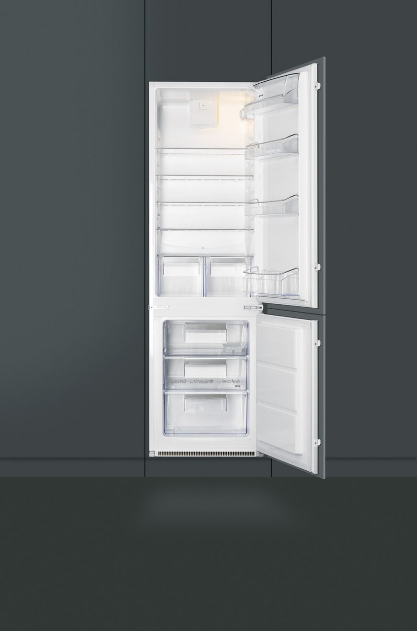 Вместительный встраиваемый холодильник с перенавешиваемыми дверцами объемом 280 литров. Предусмотрена функция принудительной вентиляции и LED-подсветка холодильной камеры.