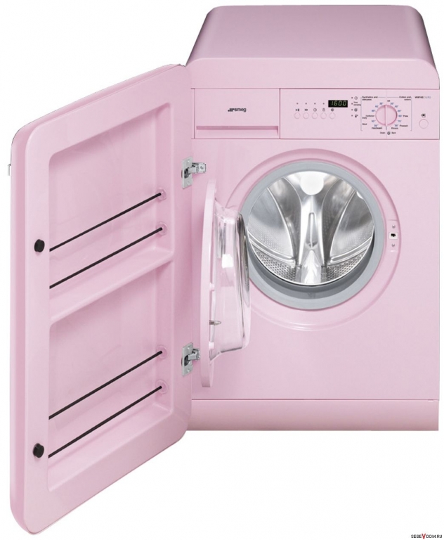 Яркая модель стиральной машины Smeg LBB14RO заставит обратить на себя внимание! Мягкий розовый цвет и интересный дизайн в стиле 50 -ых годов, вот что отличает эту модель от аналогов!