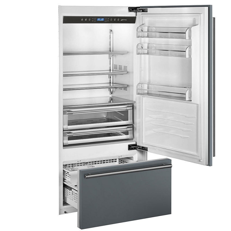 Стильный и функциональный встраиваемый холодильник Smeg с технологией No-Frost. Предусмотрен электронный контроль температуры и LCD-дисплей. позволяющий выставить необходимые температурные режимы в камерах.