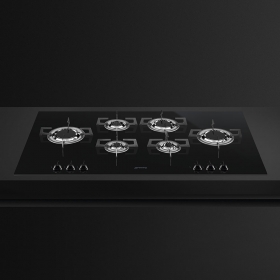 Газовая варочная стеклокерамическая поверхность Smeg PVL6106CN серии Dolce Stil Novo, шириной 100 см, с 6 конфорками Blade с решетками из нержавеющей стали.