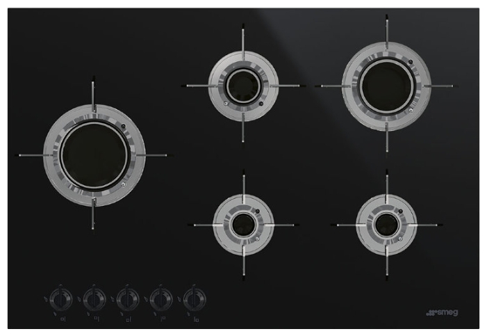 Газовая варочная стеклокерамическая поверхность Smeg PVL675LCN серии Dolce Stil Novo, шириной 75 см, с 5 конфорками Blade с решетками из нержавеющей стали.