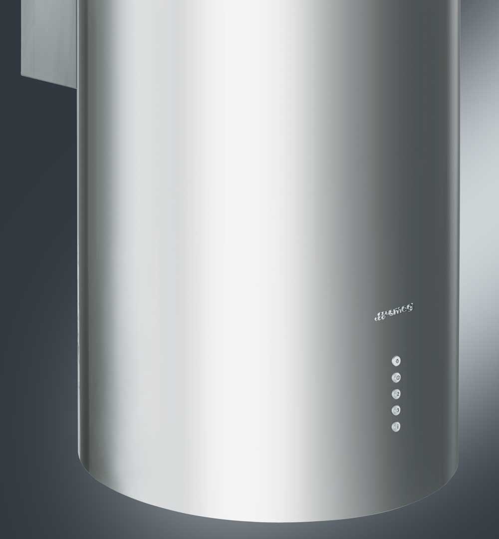 Стильная островная вытяжка от итальянского бренда — Smeg KIR37XE. 3 скорости работы и интенсивный режим, предусмотрена индикация загрязнения угольного фильтра.