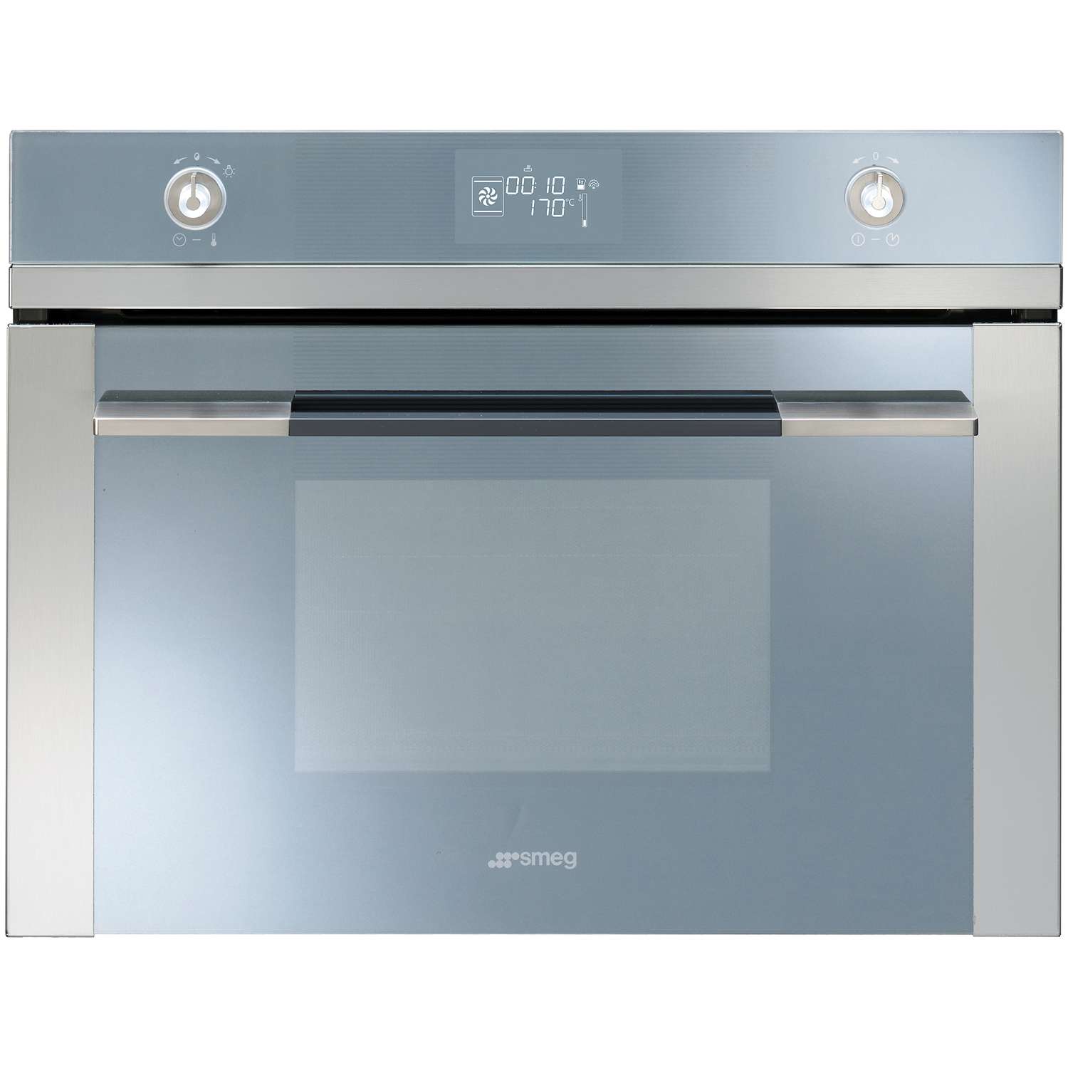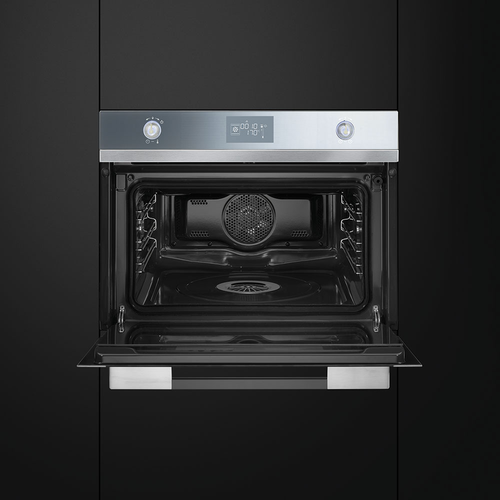 Встраиваемый духовой шкаф Smeg серии Linea SF4120VC, комбинированный с пароваркой, оснащен LCD дисплеем, электронным программатором и функцией блокировки от детей. С помощью гриля можно приготовить блюда с хрустящей корочкой, а размораживание по весу или по времени ускорит приготовление пищи. Тангенциальное охлаждение позволяет устанавливать духовку вплотную к другим приборам и мебели.