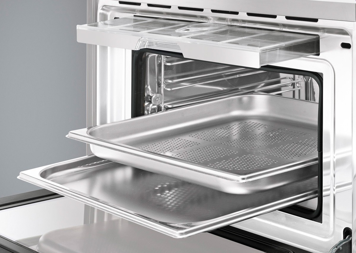 Стильный компактный духовой шкаф с функцией пароварки. Модель оснащена 12 функциями приготовления, три из них с использованием пара.