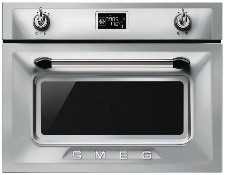 Компактный духовой шкаф Smeg SF4920VCX — современные технологии, стильный дизайн и безопасное использование. Специальная обработка поверхности предотвращает появление отпечатков пальцев. Программы приготовления с использованием пара позволяют сохранить в продуктах минералы и витамины. Уникальный режим Eco logic обеспечивает снижение потребления электроэнергии.