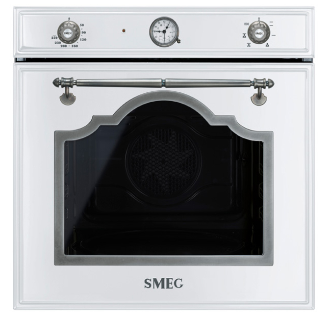 Встраиваемый электрический духовой шкаф Smeg SF700BS отлично совместим с другими кухонными приборами и аксессуарами в ретро-стиле благодаря особой форме стекла дверцы и оригинальной металлической фурнитуре. Духовку можно использовать для приготовления самых разных блюд и для размораживания продуктов благодаря наличию в ней шести режимов работы. Встроенный конвектор позволяет получать хрустящую мучную выпечку. Внутренние стенки камеры покрыты специальной эмалью Ever Clean. Она не впитывает жир и другие органические вещества благодаря небольшому диаметру пор, что обеспечивает её лёгкую очистку. Внутреннее стекло дверцы можно полностью снять, чтобы отмыть под струёй проточной воды. Аналоговый программатор позволяет задавать таймер отключения устройства, предотвращающий пригорание продуктов, а также звуковой сигнал, напоминающий об окончании очередного этапа готовки. Духовка соответствует классу энергопотребления А – её использование не требует больших затрат.