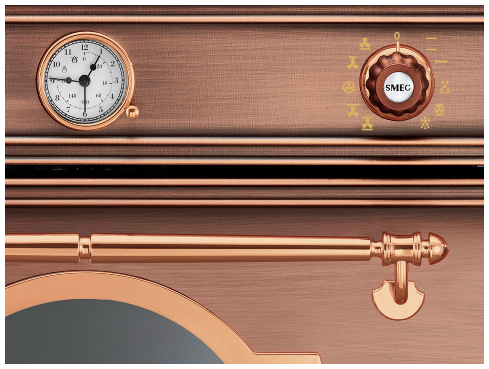 Линейка Cortina представляет собой элегантность и притягательность деталей из кованого железа ориентируясь на кузнецов, которые издревле обрабатывали железо высоко в горах Италии. Тщательно подобранные материалы и фурнитура производят образ завершенности техники, а использование современных цветов и оттенков оживляет ее, делая современной и актуальной. Отличительными чертами этой серии от Smeg являются двойной декор и изумительные стеклянные панели.