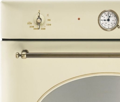 Встраиваемый духовой шкаф Smeg SF855PO сделает существенный вклад в эстетику кухонного пространства. Очарование стиля кантри этой модели придаст кухне особый уют. Современные функции и технологии сделают процесс приготовления пищи приятным, а уход за духовкой необременительным. Духовой шкаф оснащен 2-уровневыми телескопическими направляющими и аналоговым программатором с часами.