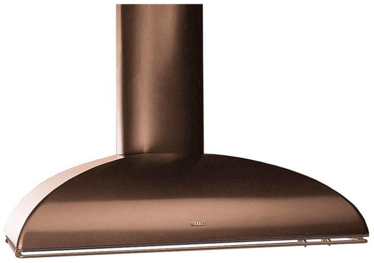 Вытяжка Smeg KS89RAE в неординарном медном цвете дополнит интерьер современной кухни. Фурнитура медного цвета завершает образ.