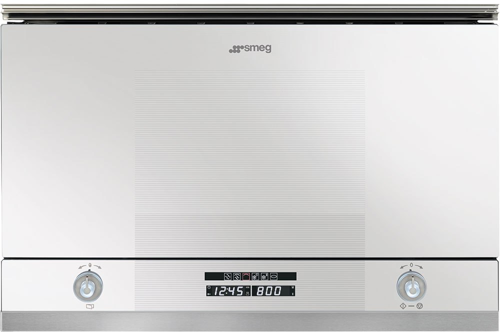 Встраиваемая микроволновая печь Smeg MP122 отлично сочетается с современным оформлением кухонного интерьера благодаря применению отделки из нержавеющей стали и матового стекла. Устройство снабжено не только обычным излучателем, но и грилем, который может использоваться для деликатного запекания мяса, овощей и рыбы. В нём предусмотрены функции размораживания по весу и времени, а также режим для приготовления пиццы. Внутренняя камера снабжена стенками из нержавеющей стали и основанием с керамическим покрытием, а гриль может откидываться вниз. Благодаря этому удаление жира и остатков продуктов отнимает считанные минуты и не требует применения сильнодействующих моющих средств. Микроволновая печь автоматически отключается при открывании дверцы. Пользователь также может предотвратить её включение детьми, заблокировав панель управления.