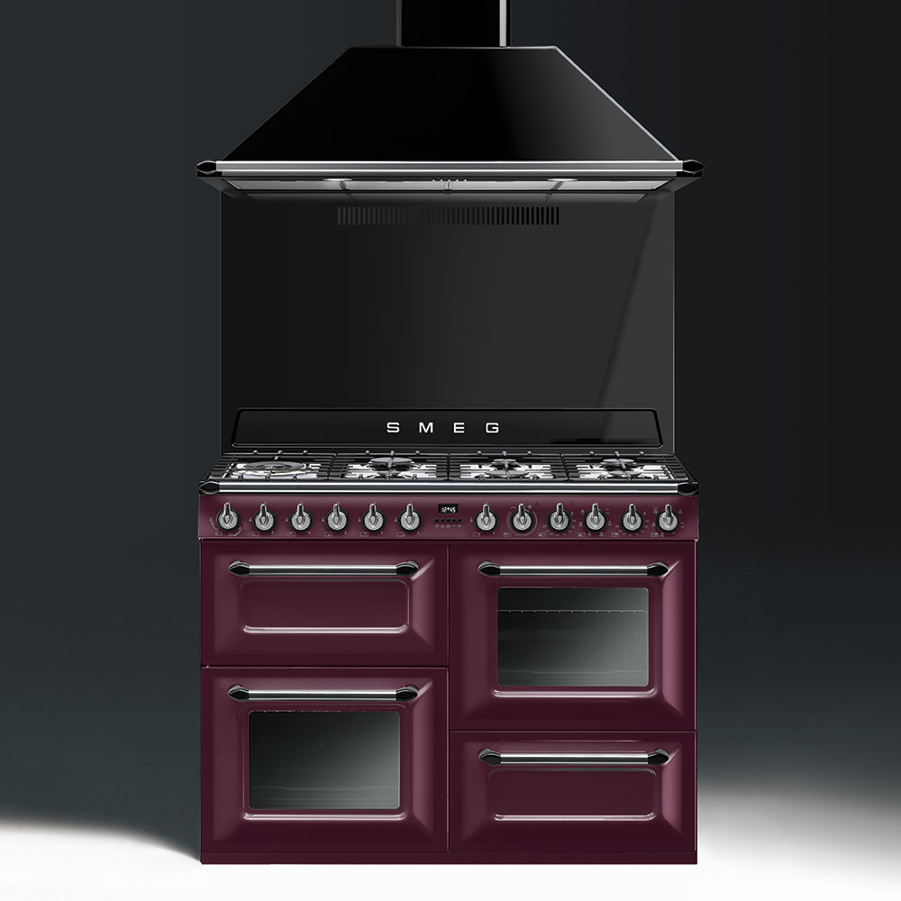 Отдельно стоящий варочный центр выполнен в уникальном цвете красного вина, который дополнит интерьер изысканностью и шармом. Три духовки и семь конфорок на варочной поверхности позволят готовить много блюд одновременно и подобрать оптимальный режим и температуру для каждого. Система газ-контроля и автоматическое выключение духовок сделают работу комфортной и безопасной.