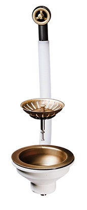 Решетка для вентиля-автомата из латуни не допускает попадание мусора в сливное отверстие.