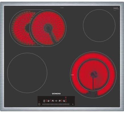 Варочная панель Siemens ET645FNN1 выполнена из стеклокерамики черного цвета. Функция защитного отключения и индикация остаточного тепла гарантируют безопасность эксплуатации. Овальная зона расширения позволяет использовать посуду нестандартной формы, а двухконтурная конфорка дает возможность выбирать площадь нагрева в зависимости от диаметра посуды
