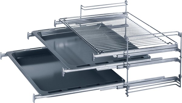 Siemens HZ338357 — 3-х уровневые телескопические направляющие полного выдвижения. Благодаря данному аксессуару противни и решётки жёстко зафиксированы и не раскачиваются.