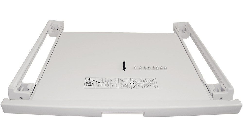 Соединительные элементы для установки на стиральную машину сушильного автомата с выдвижной полкой для белья.