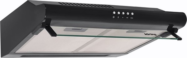 Козырьковая вытяжка Korting KHT 6332 N — компактный прибор черного цвета. Кнопки переключения скоростей и включения света расположены на передней панели. Модель отличается низким уровнем шума.