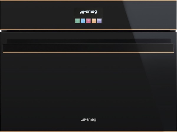 Компактный многофункциональный духовой шкаф Smeg, комбинированный с микроволновой печью. Цветной TFT-дисплей с сенсорным управлением позволяет с легкостью выставить настройки и проконтролировать текущие режимы.
