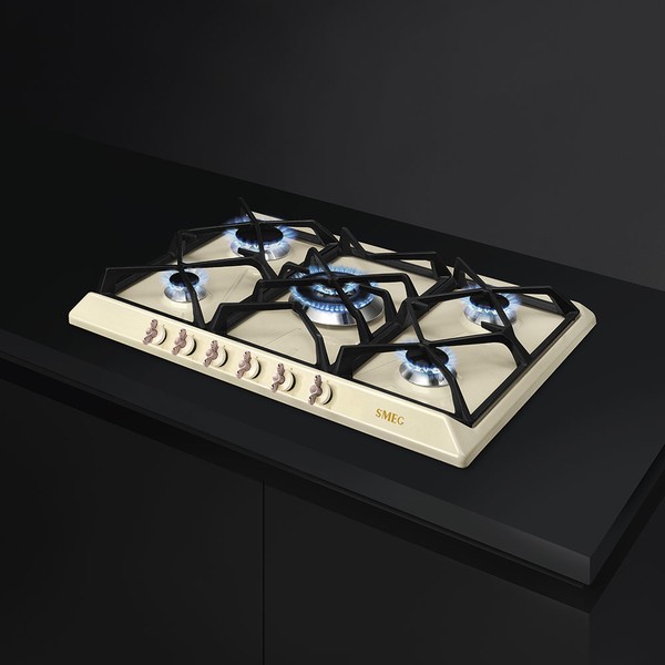Smeg SRV876POGH — независимая варочная панель с эмалированной рабочей поверхностью кремового цвета. К особенностям модели относится наличие ультрабыстрой конфорки с двойным управлением, при помощи которой можно максимально быстро вскипятить большое количество жидкости или подогреть готовое блюдо. Системы автоподжига и газ-контроля гарантируют полную безопасность при эксплуатации устройства.
