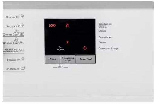| Таймер отсрочки начала стирки | есть (до 9 ч) |