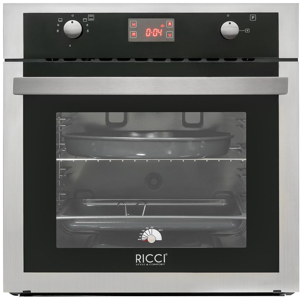 Модель управляется при помощи дисплея, поворотного переключателя, сенсора. Также духовой шкаф имеет автоматический поджиг, таймер и подсветку, что упрощает его эксплуатацию. Дополнительно стоит отметить решение производителя в области безопасности – он оснастил Ricci RGO-650IX опцией газ-контроля.