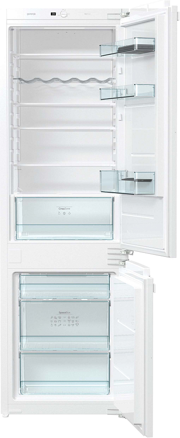 Встраиваемый двухкамерный холодильник Gorenje NRKI 2181 E1 является одной из наиболее востребованных моделей. Данное устройство имеет перенавешиваемую дверцу, поэтому установка оборудования возможна даже в небольшую кухню. Общий полезный объём составляет 248 литров, что достаточно высокий показатель.